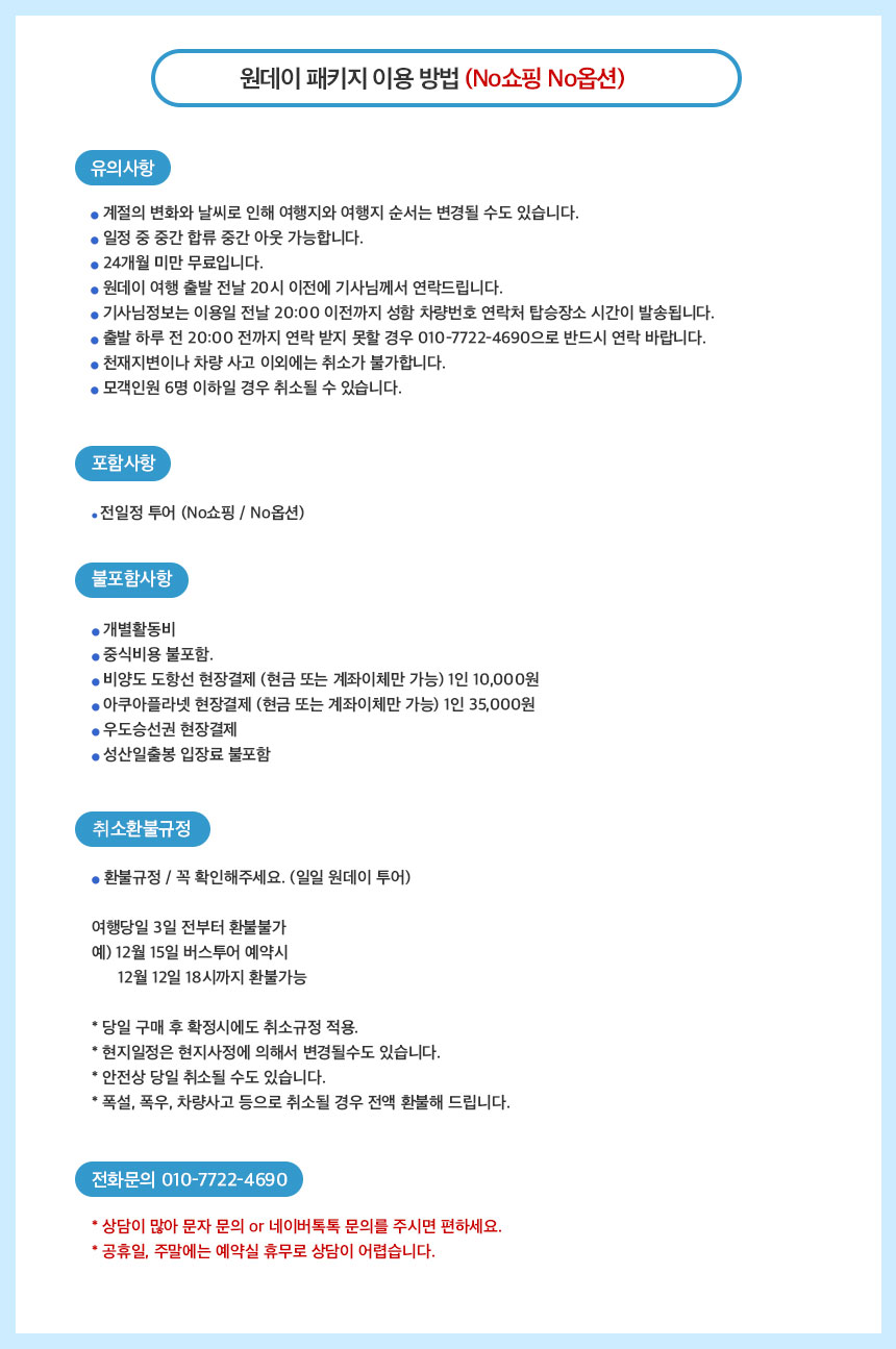 제주도 패키지 버스투어&버스대절 판매 압도적 1등업체